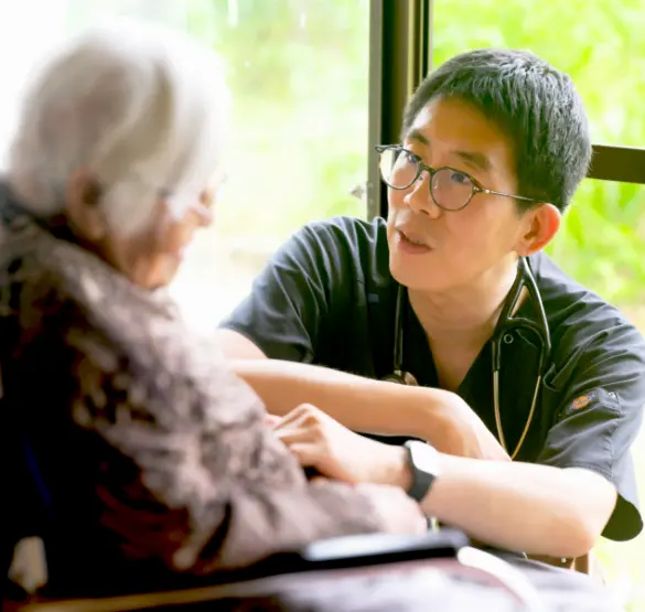 医師、看護師がご自宅やご入居施設に医療をお届けする訪問診療。 定期的な健康管理やいざという時に24時間365日すぐに対応できる迅速性。 地域の医療機関と連携し必要な時に集中して対応できる柔軟性。 葵東クリニックは訪問診療ネットワークの一員として、地域の皆様に寄り添い安心をお届けすることを理念としています。